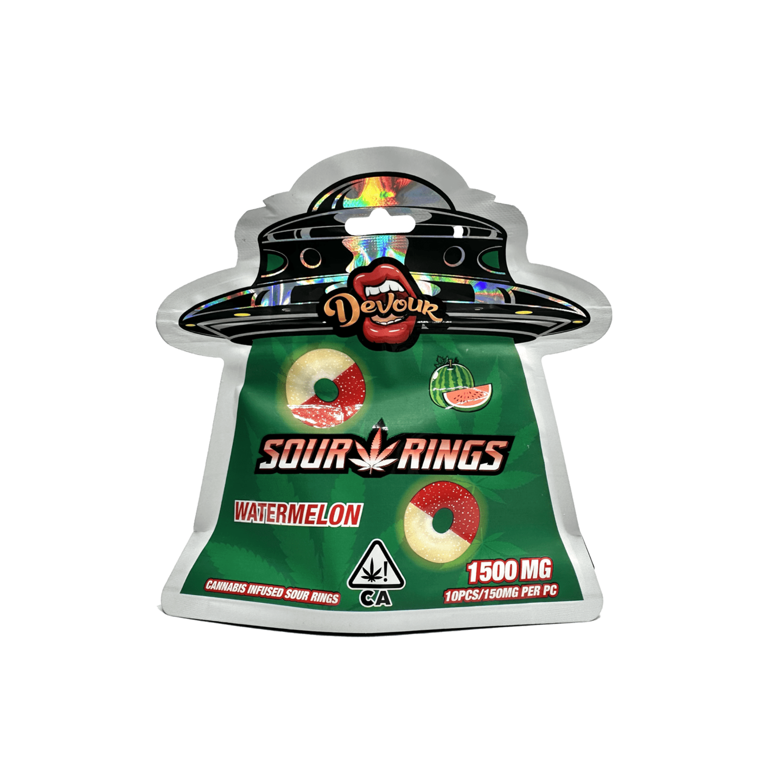 Devour Watermelon Sour Rings Gummies. Devour Sour Watermelon Rings  THC Infused Gummies. Devour Sour Watermelon Rings are infused with a flavor that is both juicy and acidic. These candies, which contain 1500 milligrams of THC, not only have a pleasant peach flavor, but they also have powerful effects, making them an enjoyable consumable experience.Â